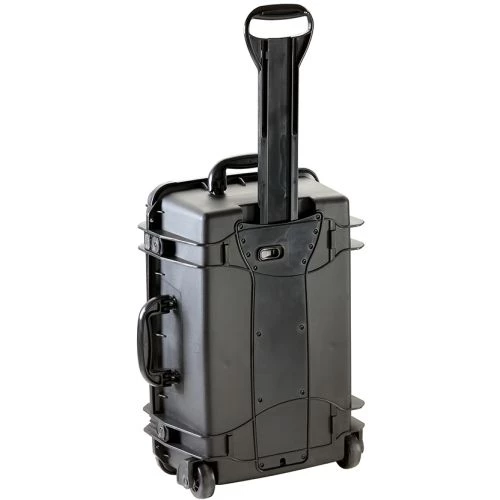 C’est une caisse à outils fabriquée en polypropylène noir et résistant aux chocs. Elle a des coins renforcés pour améliorer la rigidité et le trolley intégré facilite les déplacements.