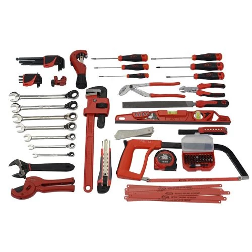 Cette boîte à outils en tissu de 39 L de la marque Sam Outillage comprend un assortiment de 96 outils de plombier, chauffagiste, climaticien et frigoriste.