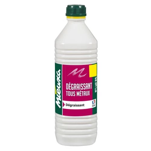 Le dégraissant tous métaux de la marque Mieuxa est conçu pour nettoyer les pièces mécaniques comme les blocs moteurs, embrayages et le matériel électrique hors tension. Cette solution sert à dégraisser tout mécanisme souillé par du cambouis ou des graisses ainsi que les traces de bitume sur les carrosseries automobiles.