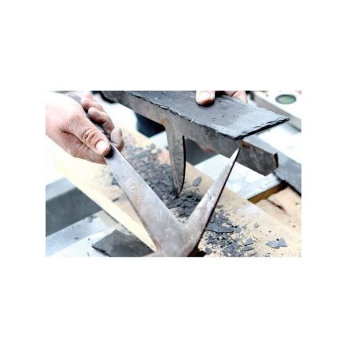 L’enclume d’ardoisier Jouanel possède une surface d’appui très légèrement convexe, cela permet de limiter considérablement les casses d’ardoises lors de la taille. C’est une enclume monobloc en acier traité, qualitéS500.