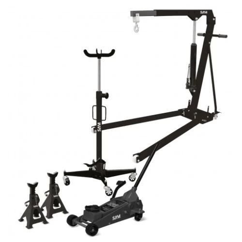 Ce pack se compose d’un cric rouleur 3 T, d’une paire de chandelles 3 T, un vérin de 500 kg et du grue 1 T.